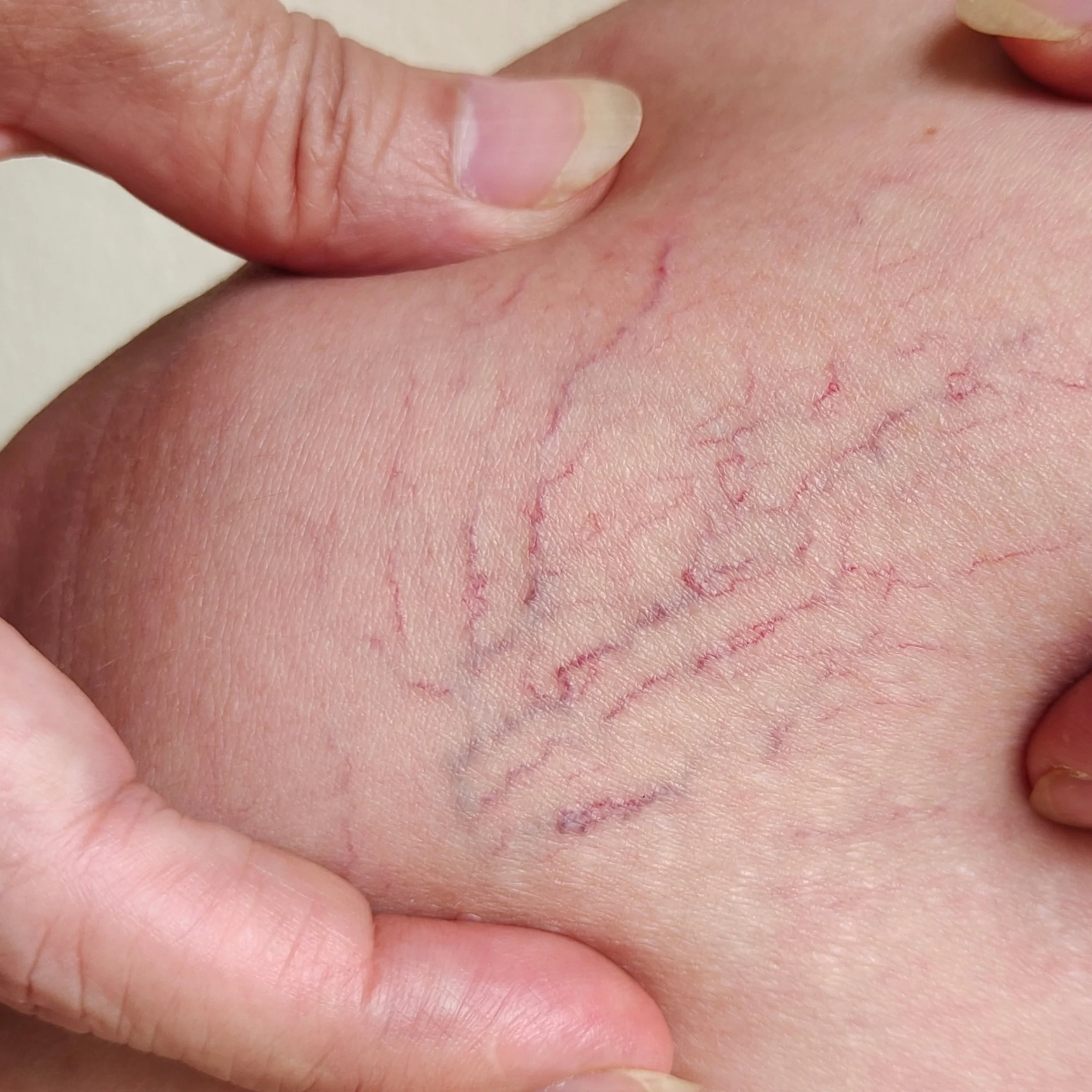 Please Note: We only treat cosmetic veins that are flat and unraised. If your veins are raised, bulging, or painful, they may be classified as varicose veins, which require medical evaluation and possibly a referral to a vascular specialist. In these cases, we recommend booking a consultation with a licensed physician or vein clinic.